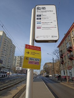 Там временно перенесли остановки автобусов на тротуары. Напоминаю, что после благоустройства предполагалось, что весь общественный транспорт будет ездить по трамвайным путям.